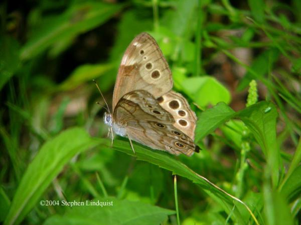 A Northern Pearly Eyed Butterfly, uncropped, taken from a distance of about 10 feet, daytime flash