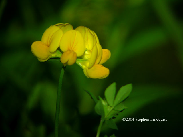 | The flower of Bird's Foot Trefoil, each lobe less than .5 inches wide, taken at dusk with the aide of flash and extension tubes End of Article |